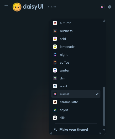 Unfortunately, because I am one of the [Developers] of all time, I wondered if I could change that, and made a core part of my portfolio website the ability to change how it looks dramatically from a selection of themes. My main inspiration was daisyUI's website, which gives you a selection of colour palettes to choose between. They probably did it to show the functionality of the library (you can add your own themes and see how it looks with their components), but still— it's a neat feature.